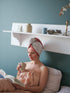 Une serviette à cheveux jolie, ingénieuse et super pratique, qui saura parfaitement trouver sa place dans votre salle de bains.  Parfaite pour préserver et sublimer vos cheveux qui seront ainsi moins agressés par la chaleur du sèche-cheveux !